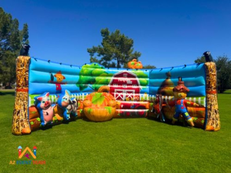 Create unforgettable fall memories! Rent our giant inflatable Pumpkin Patch Selfie Station with 3D farm animals and a scarecrow. Perfect for fall festivals, schools, and church events.