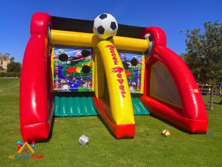 The Soccer Kick challenge is on! Two separate soccer lanes allow two participants to compete to see who can score the most goals! The bright colored soccer themed inflatable rental keeps your soccer or should I say football enthusiast entertained for hours. This is highly recommended for teen parties, high school events, school carnivals, church events, and graduations.