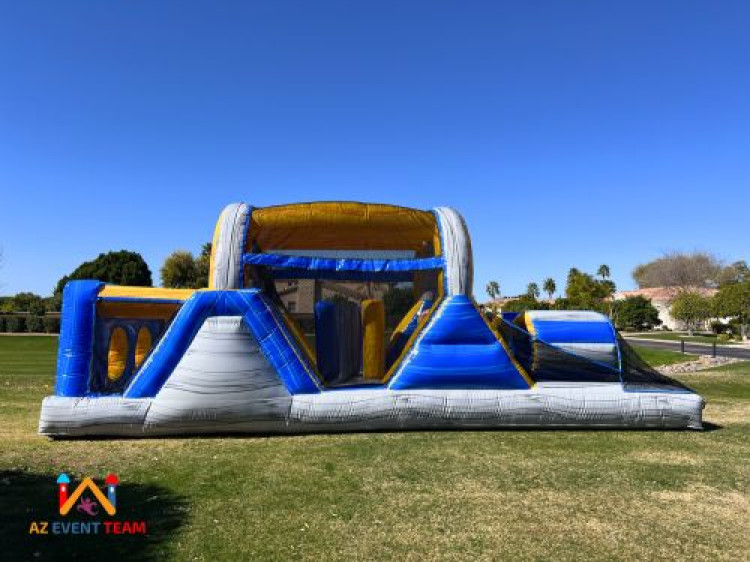 Marble Challenge Obstacle Course rental is a great obstacle course if you want to race and compete with an opponent. At 30 feet long this obstacle course rental consists of one piece and fits in lots of areas. Obstacle Course rentals offer challenging terrain that even keep your guest busy the entire time. The obstacle course features bright vibrant colors to attract your guest. This rental also keeps your guest entertained for hours with tunnels to climb through, logs to maneuver through, popups to finesse themselves around, and a wall to climb overall to see who finishes first.  This obstacle course is great for elementary age to high school age all the way to adults!