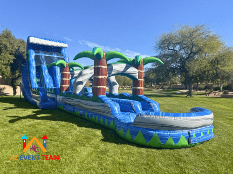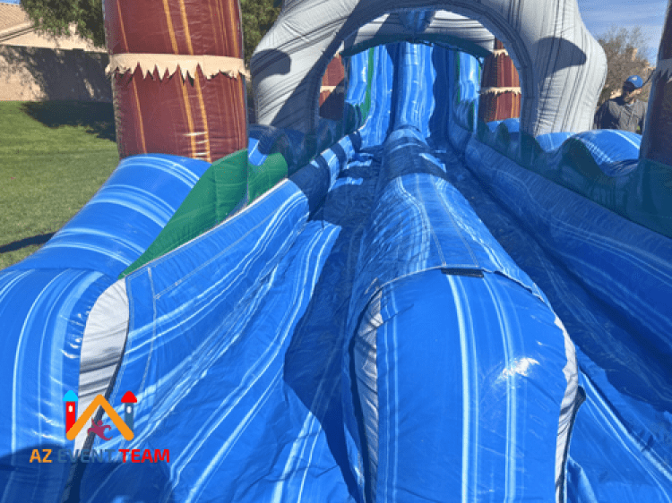 Are you ready to make a huge splash at your next event? Introducing the Dual Lane Tsunami with a Slip 'n Slide, a massive 22-foot inflatable water slide that promises to be the centerpiece of any party! This exhilarating water attraction is now available for rent across Arizona, specifically serving the cities of Phoenix, Tempe, Scottsdale, Mesa, Chandler, and Paradise Valley.