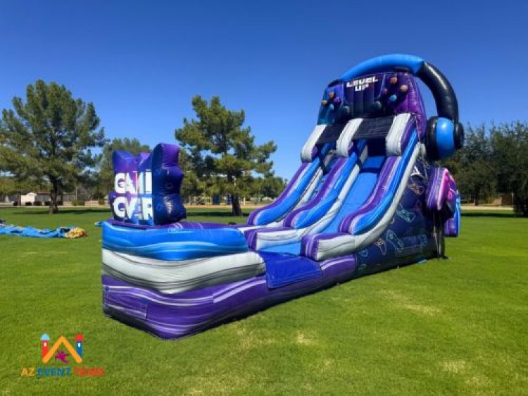 Are you a Gamer Fan? If so we have the best Gamer Themed Inflatable Water Slide Rental available. The Gamer Slide was designed for guests 3 to 12 years of age. This is one of the best looking water slide rentals to keep your guest cool in the hot AZ sun! The inflatable slide rental comes with easy-climb stairs allowing even your youngest guests to climb with ease. Having a birthday party or adding this to a large event will ensure that you have a successful event.