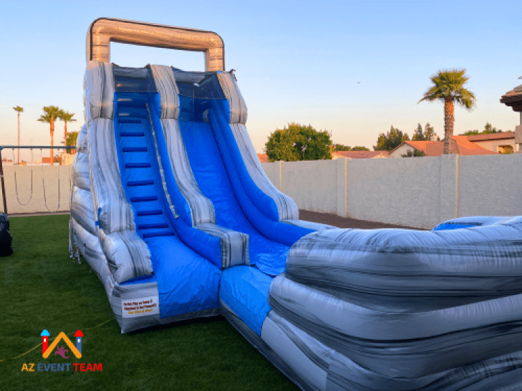 Keep cool this summer with an inflatable water slide rental from AZ Event Team. The Silver Falls water slide was designed for guests 3 to 12 years of age. The inflatable water slide rental comes with easy-climb stairs allowing even your youngest guests to climb with ease. From Birthday parties to larger events this water slide rental will ensure that you have a successful event.
