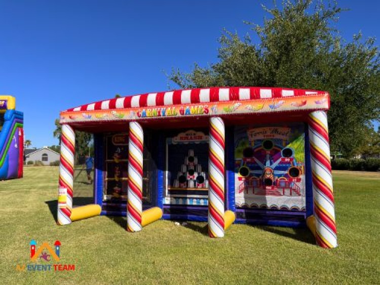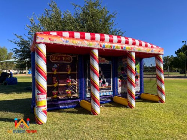 Rent a fun and vibrant inflatable carnival game from AZ Event Team in Phoenix! This 3-game inflatable carnival game includes Ring Toss, Milk Can Smash, and Ferris Wheel Toss, allowing 3 players to enjoy classic carnival excitement at birthday parties, church picnics, and school events.